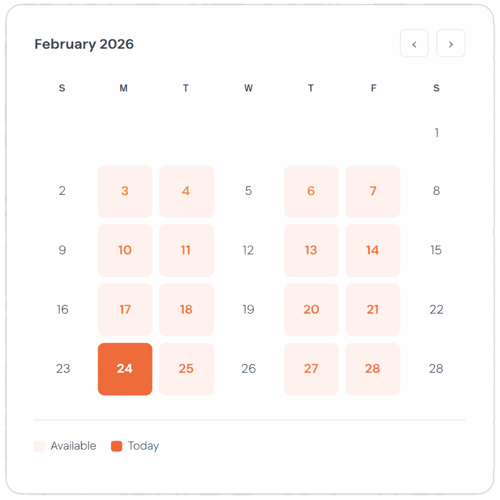 Automatic timezone conversion so buyers worldwide book you correctly.